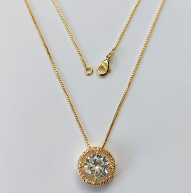 GARGANTILHA FOLHEADO A OURO COM CORRENTE VENEZIANA DE 45CM PINGENTE CRAVEJADO EM MICRO ZIRCONIA E PEDRA DE ZIRCONIA 10MM OURO000625