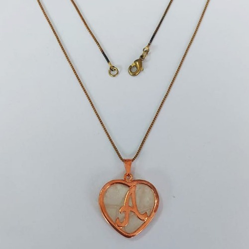 GARGANTILHA NO BRUTO PRONTO PARA O BANHO - (CX146) - COM CORRENTE VENEZIANA DE 45CM - CORAÇÃO LETRA A MADRÉ PÉROLA -23MM PESO: 5,7GR - BRU0003677