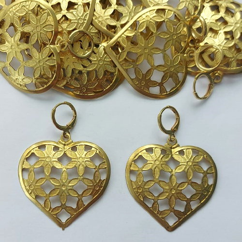BRINCO NO BRUTO PRONTO PARA O BANHO - (436) BRINCO ARGOLINHA DE PRESSÃO COM PINGENTE CORAÇÃO VAZADO 38MM - PESO: 5,8GR - COMPOSIÇÃO: 100% LATÃO - BRU15824