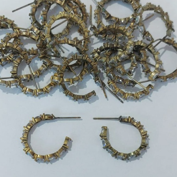 BRINCO NO BRUTO PRONTO PARA O BANHO (ARGOLA COM UMA FILEIRA DE ZIRCONIA ) BRINCO TRADICIONAL DE PINO - TAMANHO 2,5CM - (CX148) ( - PESO 2,8GR - BRU23907