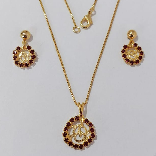 CONJUNTO FOLHEADO A OURO - BANHADO COM 5 MILÉSIMOS + VERNIZ DIAMOND - CONJUNTO COM CORRENTE VENEZIANA 45CM E PINGENTE E BRINCOS COM MICRO ZIRCÔNIAS VERMELHAS 14MM - OURO1074