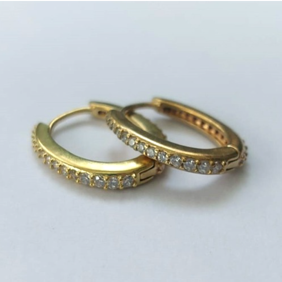 BRINCO NO BRUTO PRONTO PARA O BANHO(CX142)( BRINCO DE ARGOLINHA PRESSÃO TODA CRAVEJADO EM ZIRCONIAS ) PESO 2,4GR / BRU0003321