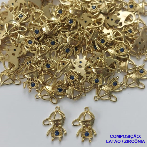 PINGENTE NO BRUTO PRONTO PARA O BANHO - PINGENTE MENINO COM BONÉ E ZIRCÔNIA AZUL - TAMANHO 16MM - PESO TOTAL 0,9GR - BRU0001610