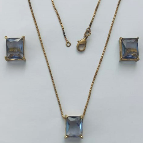 CONJUNTO NO BRUTO PRONTO PARA O BANHO - GARGANTILHA COM CORRENTE VENEZIANA 45CM E PINGENTE EM ZIRCÔNIA LILÁS RETANGULAR 8X10CM - PESO TOTAL 5GR - BRU15519