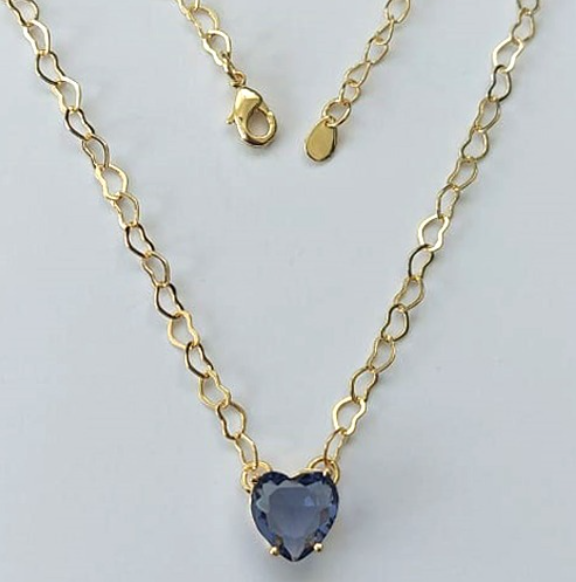 SHOCKER FOLHEADO A OURO 5 MILÉSIMOS + VERNIZ DIAMOND - CORRENTE DE CORAÇÃO 40CM + EXTENSOR E FECHO LAGOSTA - PINGENTE ZIRCÔNIA FORMATO CORAÇÃO 10MM - OURO892