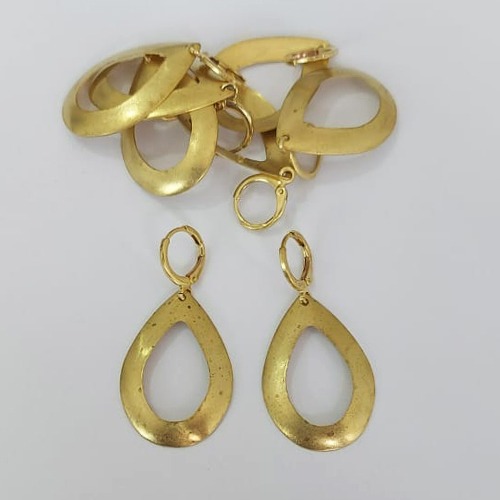BRINCO NO BRUTO PRONTO PARA O BANHO - - BRINCO ARGOLINHA DE PRESSÃO (TRANQUETA) (V1352) COM PINGENTE GOTA VAZADA 20MM - PESO TOTAL 3,2GR - COMPOSIÇÃO: 100% LATÃO - BRU0003643