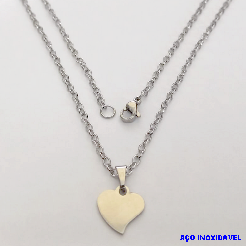 GARGANTILHA EM AÇO INOXIDAVEL COM *(CORRENTE DE 50CM)* E FECHO LAGOSTA(CX150) -(013) PINGENTE CCORACÃO - AÇO0223
