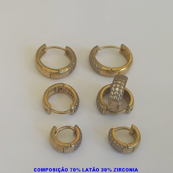 BRINCO NO BRUTO PRONTO PARA O BANHO LATÃO - TRIO DE BRINCO COM 3 PAR TAMANHOS 15MM/12MM/10MM CRAVEJADOS COM MICRO ZIRCÔNIAS - PESO TOTAL 5,0GR - BRU100343A