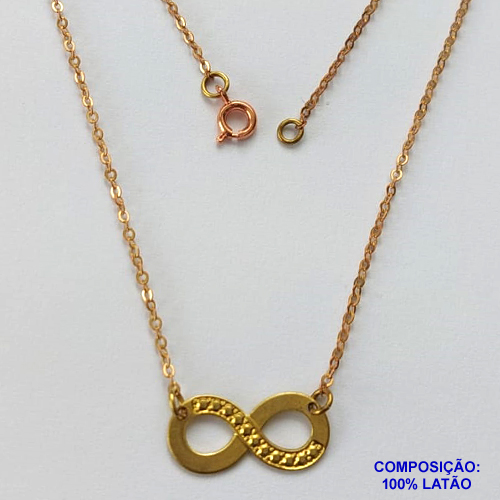 GARGANTILHA NO BRUTO PRONTO PARA O BANHO - (CX100) GARGANTILHA CADEADO 45CM COM PINGENTE INFINITO (1518) - PESO TOTAL 2GR - BRU13920
