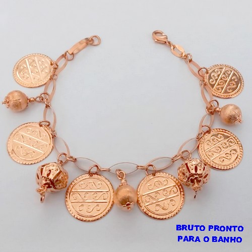 PULSEIRA NO BRUTO PRONTO PARA O BANHO(CX167 PULSEIRA SIMPLES COM VARIOS PINDURICALHO(TAMANHO 18CM)PESO 13.9GR - BRU24970