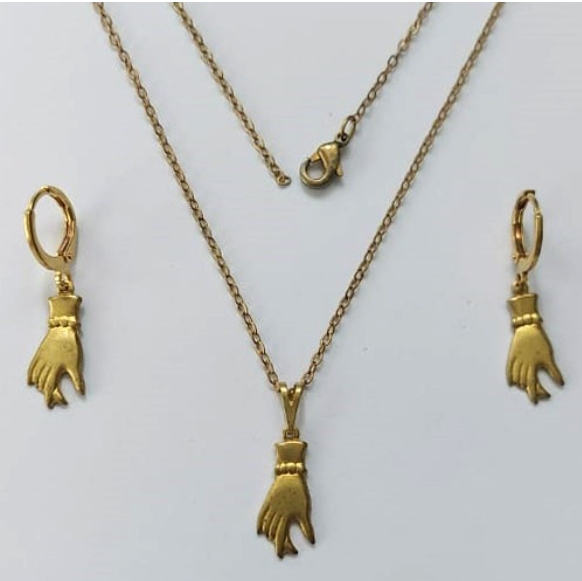 CONJUNTO NO BRUTO PRONTO PARA O BANHO(E0478)PESO TOTAL 2.3GR - COM CORRENTE CADEADO E BRINCO COM BASE ARGOLINHA DE PRESSÃO BRU0003352