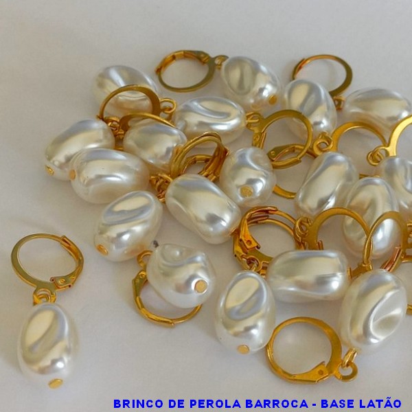BRINCO NO BRUTO PRONTO PARA O BANHO - BASE DESENHADA PÉROLA BARROCA COM ARGOLA DE PRESSÃO TAMANHO - 29MM - PESO 2,5GRG - BRU100243A