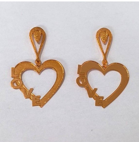 BRINCO NO BRUTO PRONTO PARA O BANHO(CX157) BRINCO DE PINO COM BASE TRABALHADA COM CORAÇÃO ESCRITO LOVE ( PESO 3.5GR (BRU24605