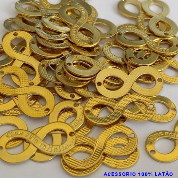 ACESSÓRIO BRUTO PRONTO PARA BANHO - VENDIDA POR UNIDADE COMPOSIÇÃO LATÃO (1513) QUE SEJA INFINITO 22X10MM C/ INSCRIÇAO C/ 2 FURO - PESO TOTAL 0,7GR - BRU000728